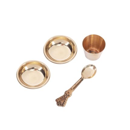 Click Pujan Pooja Thali Set – Metal 5-1x Plate + 1x Spoon + 1x Glass + 2X Bowl | Thali for Prasad & Rituals | Puja Ki Thali | for Aarti, Hawan, Lakshmi Poojan | Diwali/Navratri